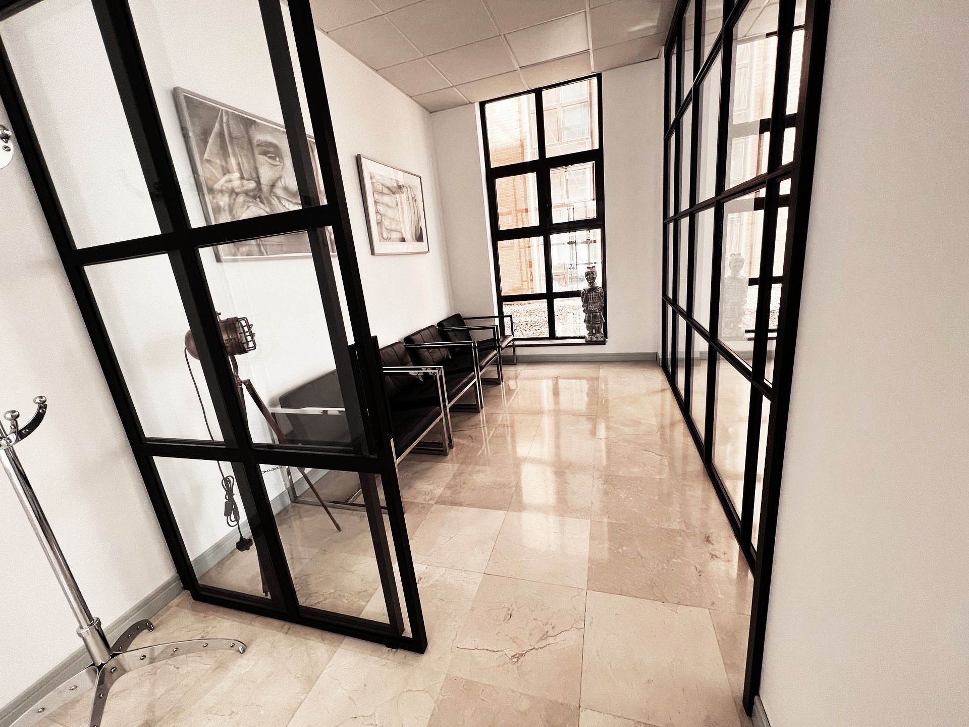 Ubicado en un edificio emblemático de oficinas de prestigio, el estudio cuenta con grandes ventanales que proporcionan una abundante luz natural y unas vistas que invitan a la reflexión. Este diseño de espacios abiertos, sin paredes, con cristaleras que permiten una circulación fluida, otorga una sensación de amplitud y transparencia, valores fundamentales en nuestra práctica jurídica. Su selecta decoración se distingue por su elegancia y modernidad, subrayando el sello distinguido que impregna todo el ambiente.
